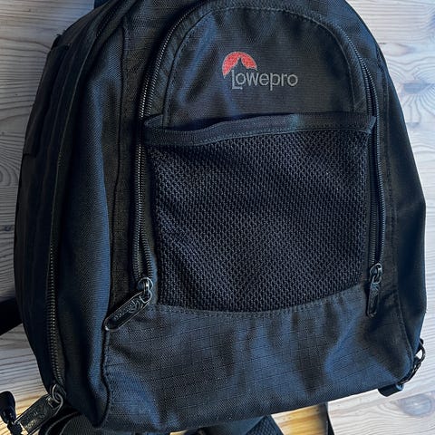Brukt, men masse sekk igjen her. Stor og meget solid sekk. Det følger med regntrekk. Det følger også med flere padding/rominndelingslommer enn avbildet.