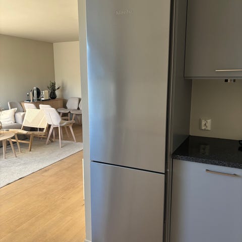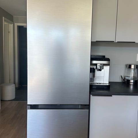 Kjøl/frys kombiskap, rustfritt stål, 185 x 59 x 67 cm. Nytt i august -23. Stått lagret siden august 25. Nypris 20500, har kvittering.