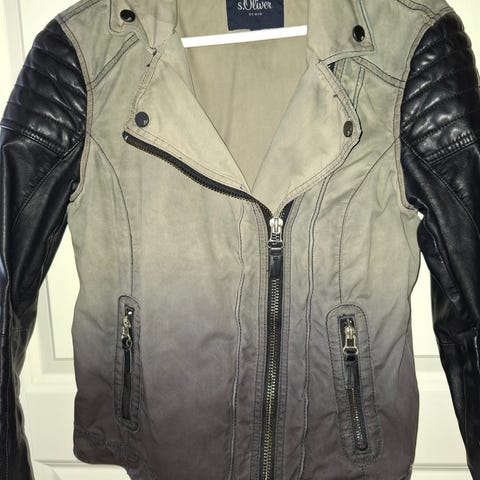 Kort denimjakke med skinndetaljer på ermene✨ Str L🖤