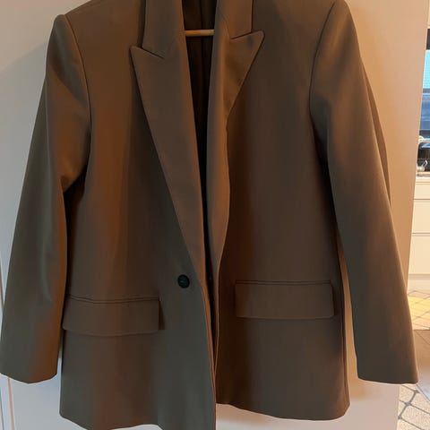 Klassisk blazer i blått fra Zara, størrelse S. Jakken har én knapp foran og er laget i et teksturert stoff som gir et stilig uttrykk.
