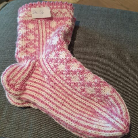 Heimestrikka sokker i str 37/39.