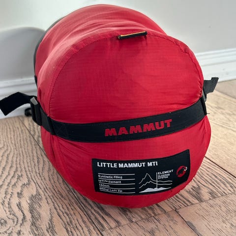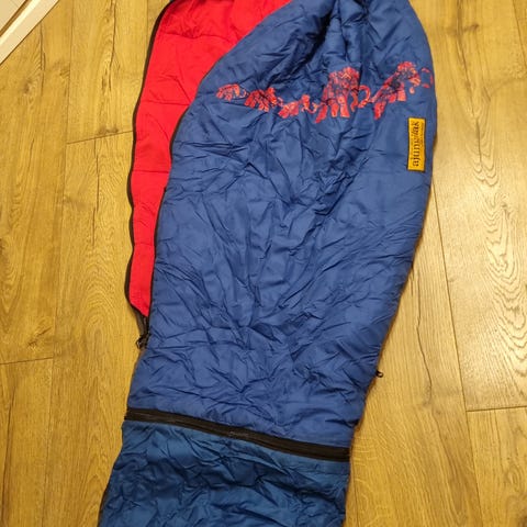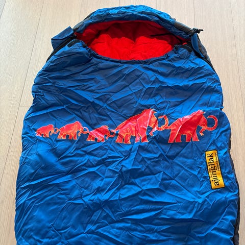 Veldig lite brukt Little Mammut sovepose i blå farge. Passer til barn og kan vokse med barna, full størrelse 149 cm, men kan også ta av 45 cm. Laget for å gi komfort og varme under utendørs bruk.
