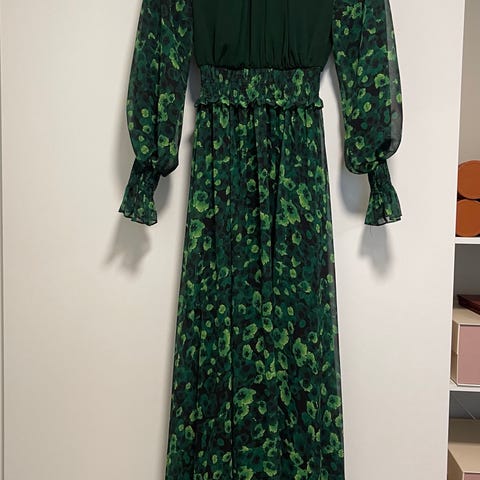 Lekker grønn lang kjole med blomster mønster fra Massimo Dutti.