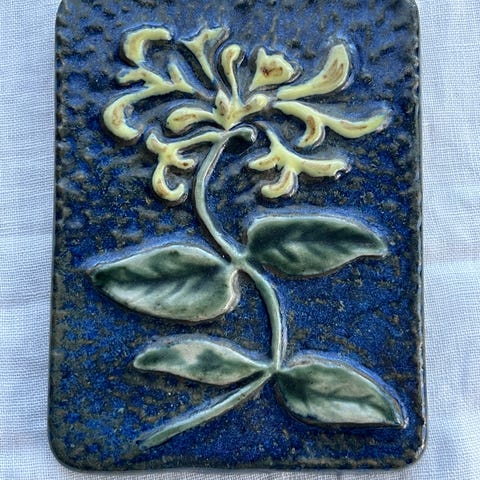 Dekorativ keramisk veggflis med blå blomstermotiv
