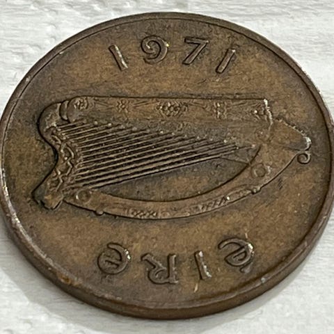 Forsiden har en irsk harpe (clĂĄirseach), med teksten âSaorstĂĄt Ăireannâ rundt og Ă„ret delt som â19 34â.