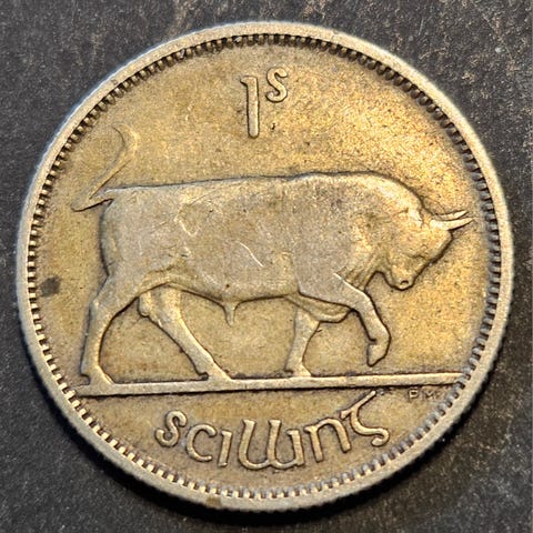 Dette er en irsk 3-pence-mynt (threepence) fra 1934, utstedt av Den irske fristaten (SaorstĂĄt Ăireann). Den har en diameter pĂ„ ca. 17,6 mm, veier ca. 3,24 gram og er laget av nikkel (senere varianter i cupronikkel fra 1942).