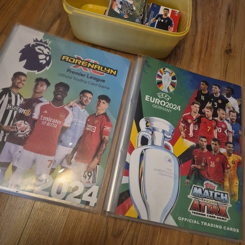 Adrenalin XL, match attack, topps premier league,panini prizm inkl nummerert Rodrigo. Top class, nummerert arsenal David Seaman samt signert Alfie devine fra leaf trading card.