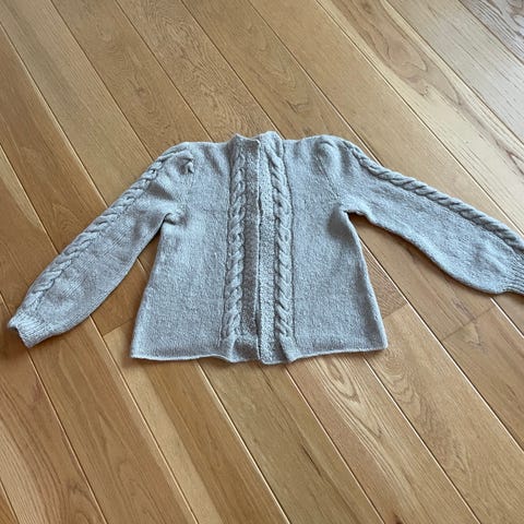 Selger min håndstrikkede erlejakke i str xl/xxl, da den er for stor til meg. Den er strikket i brun (farge kanel) kidsilk Erle, som er laget av 56% kid mohair, 26% silke og 18% ull, og den er myk og deilig å ha på seg. Lite brukt.
