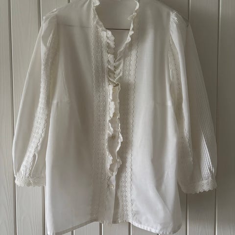 Nydelig vintage bluse med søte detaljer på kragen og fin knappeløsning. Rett modell, passer str S og M.
