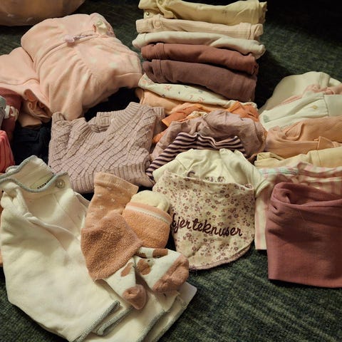 Pent brukte sett i str. 50 til nyfødt gutt eller jente. Newbie og HM.