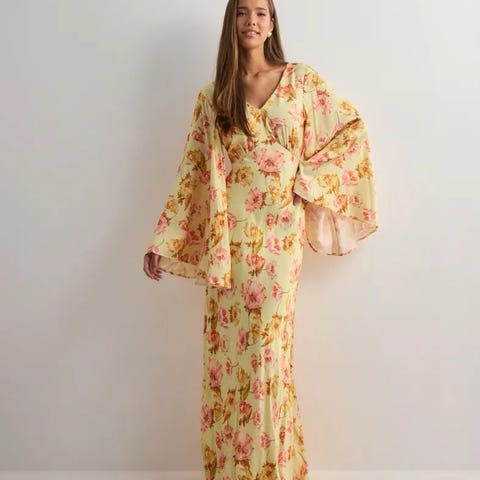 Med skjult glidelås i ryggen og maxi-lengde. Yttermateriale er 50% Ecovero™ viskose og 50% viskose