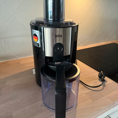 Maskinen ble kjøpt for mange år siden, men har nesten ikke blitt brukt og fungerer fortsatt helt som den skal. Den er kraftig, enkel å rengjøre og effektiv til å presse juice fra frukt og grønnsaker.