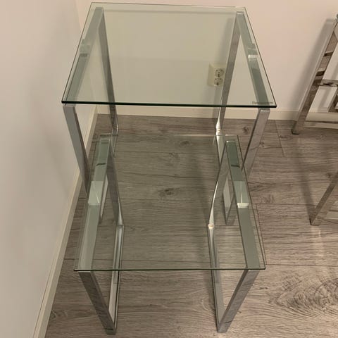 Det store bordet 50.50cm høyden 55 det lille bordet 36.36 høyden 45cm