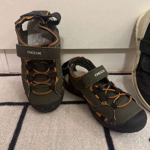 Geox unisex sandaler i størrelse 34. Sandalene er blå og har en slitesterk gummisåle. De har justerbare borrelåsremmer for god passform og komfort. Kun brukt en sommer av et barn.