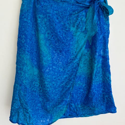 Florlett skjørt i 100% silke. Knapper i åpningen, lommer foran og bak. Fra 80-tallet.