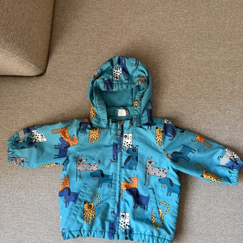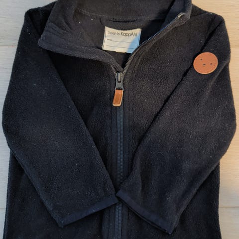 KappAhl barnejakke i størrelse 80, farge svart, designet for gutter. Jakken har hette og refleksdetaljer på ermene. Egnet som funksjonelt yttertøy for barn.