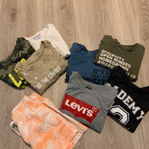 Klespakke med 5 skjorter og 2 gensere. Merker som Lindex, Levis og Garcia.