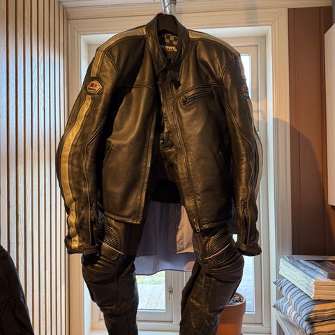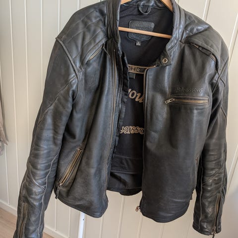 Harley-Davidson Skinnjakke for herre i svart mørk brun. Original Harley-Davidson FXRG. Med weatherproof skinn med glidelåslommer utvendig og innvendig. Lufting i front og bak, innerjakke følger med. Lite brukt.