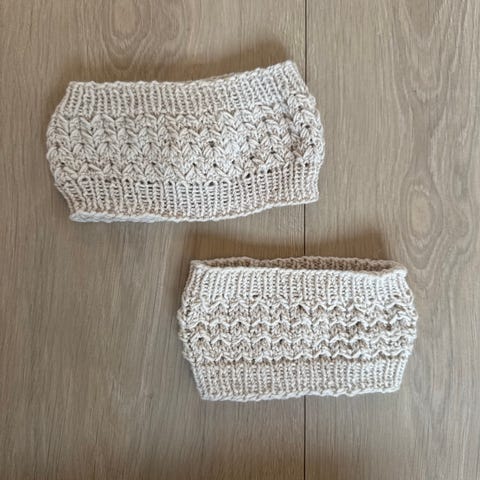 Selger et nydelig håndstrikket pannebånd i Mini Alpakka (100 % myk merinoull/alpakka).