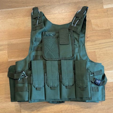 Selger ny ubrukt cargovest i myk fin bomull. Str XL passet ikke meg i høyde 186. Den vil passe bra til høyde 170 og max 70 - 75 kg. Fargen er kaki/beige som ikke kommer frem på bildet. selges kr 200