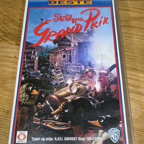 Selger en VHS-kassett av den norske klassikeren Flåklypa Grand Prix.