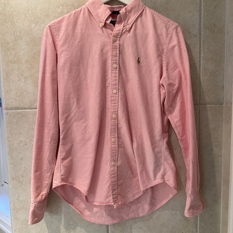 Nydelig skjorte fra Ralph Lauren i peach-farge. Modellen heter custom fit. Veldig lite brukt. Nypris:1899,-