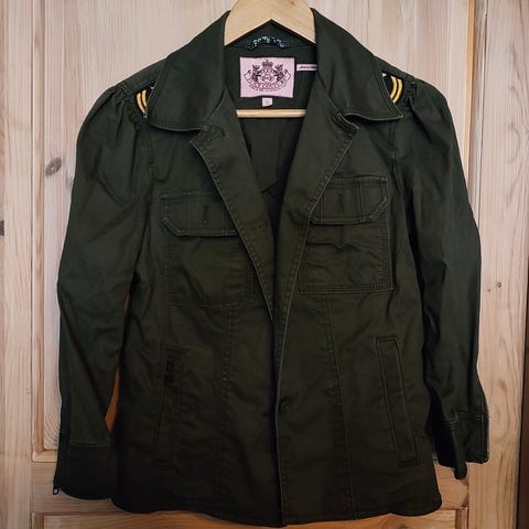 Kul grønn militær inspirert jakke med bånd. Kjøpt av en i New York som redesignet klær.