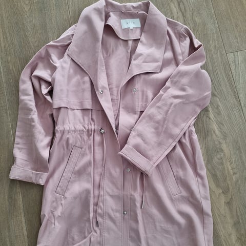 Selger en flott skjortejakke i størrelse S. Den er brukt et par ganger, men fremstår fortsatt som veldig fin. Stoffet er behagelig og lett, og den sitter pent på. Den dus lilla/rosa fargen gir et elegant og moderne uttrykk, perfekt både til hverdags og litt penere anledninger.