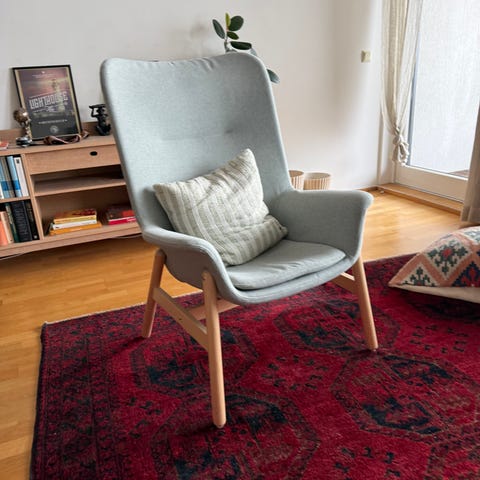 Brukt lenestol selges. Farge som på siste bilde. Trekket er slitt og burde byttes, men lenestolen er god å sitte i og ellers i god stand. Må hentes.