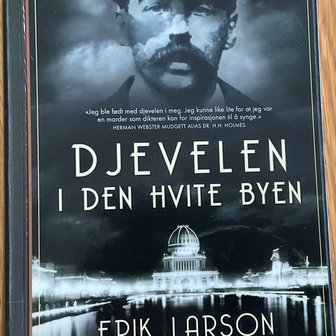 ‘The devil in the white city’ skrevet av Erik Larson. Boken er på norsk og utgitt i 2017. God stand.