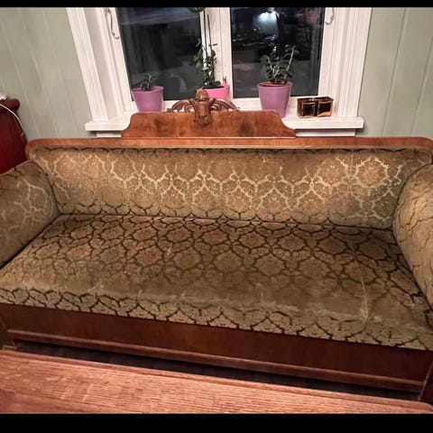 gammeldags (antikk?) komfort sittesofa. Sittehøyde 45 cm Tung