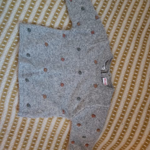 Cardigan helt ny med merkelapp. Jenta vokset ut av den før vi rakk å bruke den.