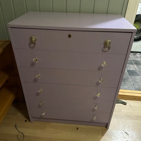 Fem skuffer kommode til salgs for 250 kroner.