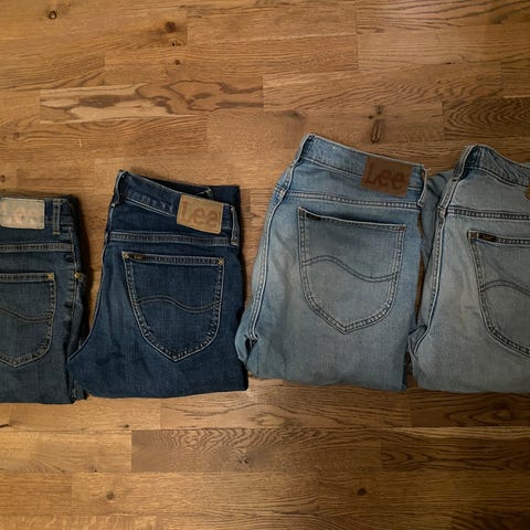 2 LEE JEANS, mod. "Daren Zip Fly": kun prøvd 1 gang, vasket 1 gang (taggene er derfor ikke på), men kjøpt for stor. W38/32. Nypris 1199,-, selges kr. 590,- pr. stk. JEAN PAUL/Cordfløyel 400,-, Chinos/bomull ++. Norgespakke m/sporing 73,-. PostNord 69,-.