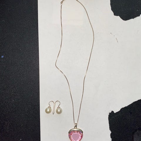 Elegant halskjede i ekte sølv med vakkert anheng pyntet med halvedelstener og liten perledetalj.