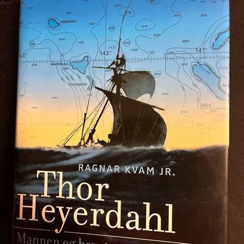 Thor Heyerdahl – Mannen og havet. Av Ragnar Kvam. Innbundet bok med smussomslag. Gyldendal forlag. 456 sider. Utgivelsesår: 2005. Språk: Norsk (bokmål)