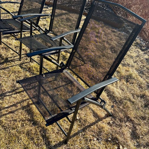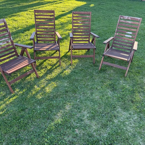 70/80 talls hagestoler. , må kanskje spray lakkeres da de er falmet Regulerbare . Kr 50 pr stk