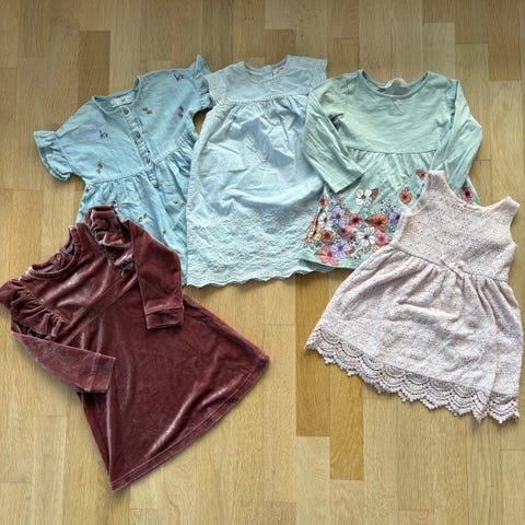 Diverse kjoler i ull/bomull/viskose fra str 62 til 74. Priser fra 75, - til 150,- Alt er pent brukt, evt bare vasket. Sett gjerne sammen fler til en pakke hvis du vil. 😊