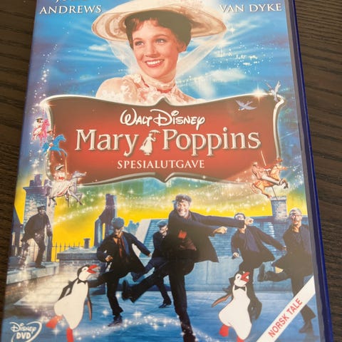 Walt Disney Mary Poppins på DVD. Inkluderer bonusmateriale og klassiske sanger. DVD-en inneholder filmen med Mary Poppins og karakterene fra filmen. Orginalversjonen i fra 1964.
