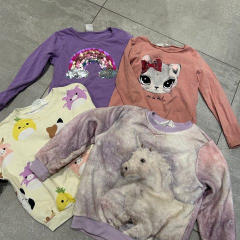 H&M barneklær består av en 3-pakning gensere i størrelse 128 for jente. Materialet er mykt og egnet for barn.