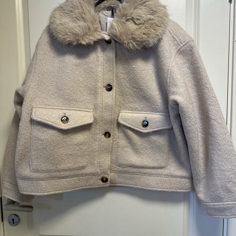 Kjempefin jakke med pelskrage str 40. Kjøpt på Bubbelroom. Den er ubrukt,lappen henger på.