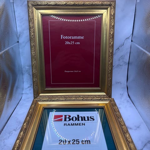 Flotte rammer i tre med dekor, i gulfarge.