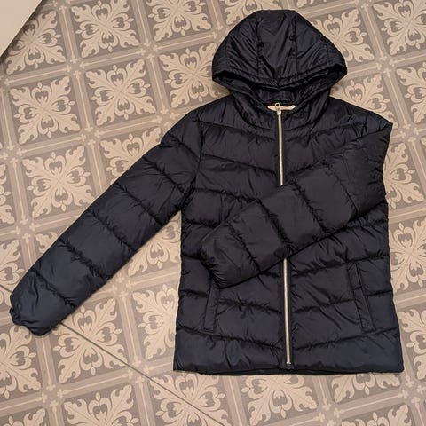 Nydelig jakke. Jakken er ikke tykk. Det er ingen tegn på slitasje.