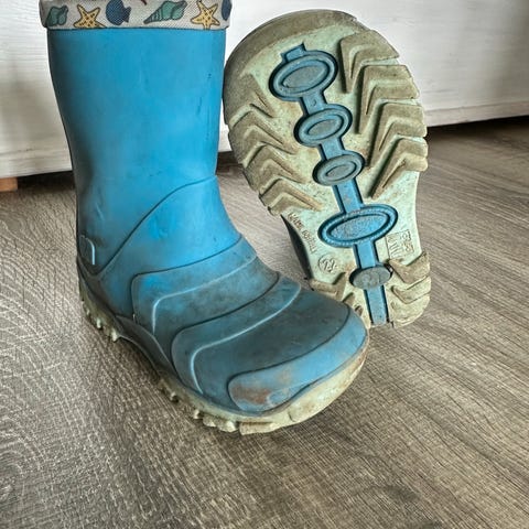 Barne Gummistøvler i blå farge, størrelse 20. Laget for gutter, egnet for bruk i våte og gjørmete forhold. Gummistøvlene har slitesterk såle for godt grep.