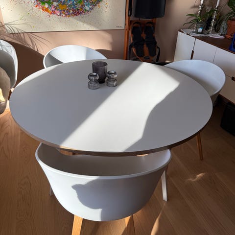 Bordet har en diameter på 120 cm, som gjør det perfekt for både små og mellomstore rom.