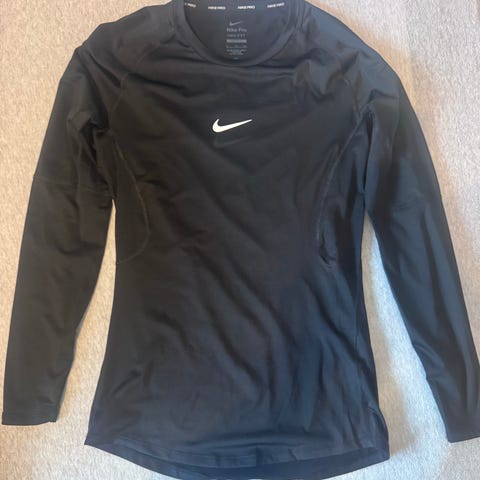 Selger en original Nike langermet trøye i størrelse M. Trøyen har et klassisk svart design med hvit Nike-logo på brystet.