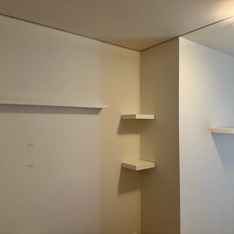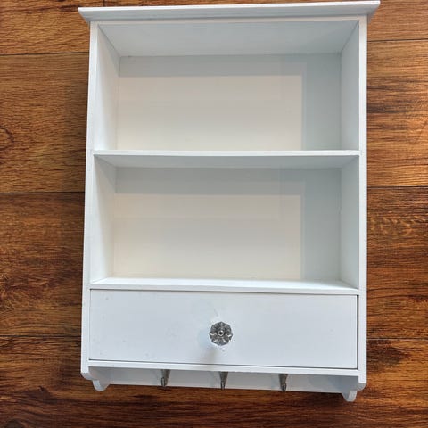 Hvite bildehyller, også fine som vegghyller for smånips lys etc eller over senga om du ikke har plass til nattbord.