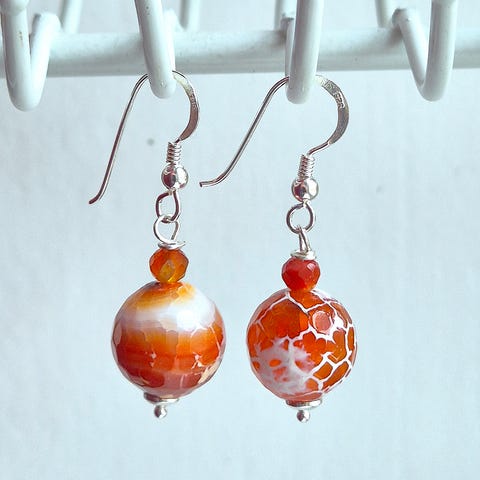 4. Ørepynt med en stor sten: dragon skin agat (drage agat) med vakre mønstre i stenen. Kr. 360.