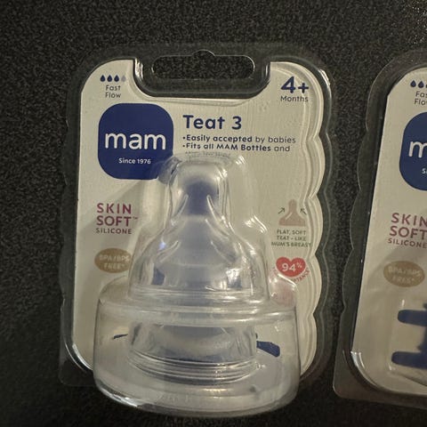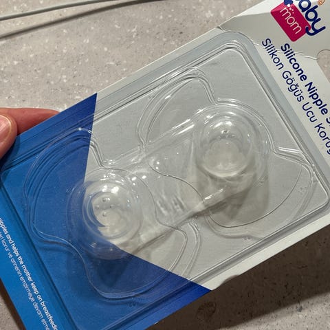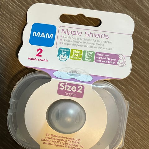 MAM Nipple Shields Small størrelse laget av silikon. Designet for å beskytte brystvorten under amming og hjelpe med ammeproblemer. Gjennomsiktig materiale for diskret bruk. Passer for nyfødte og spedbarn.