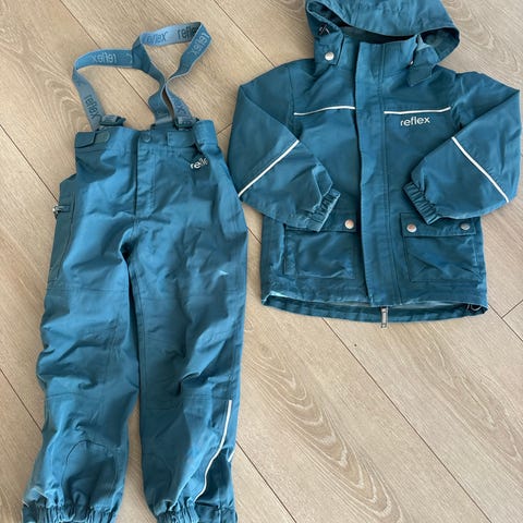 Brukt, men greit skallsett fra Reflex. Det mest solide og funksjonelle jakke og bukse med vanntette, vindtette og pustende kvaliteter. Perfekt til uteaktiviteter, til skole- og barnehagebruk og på tur!